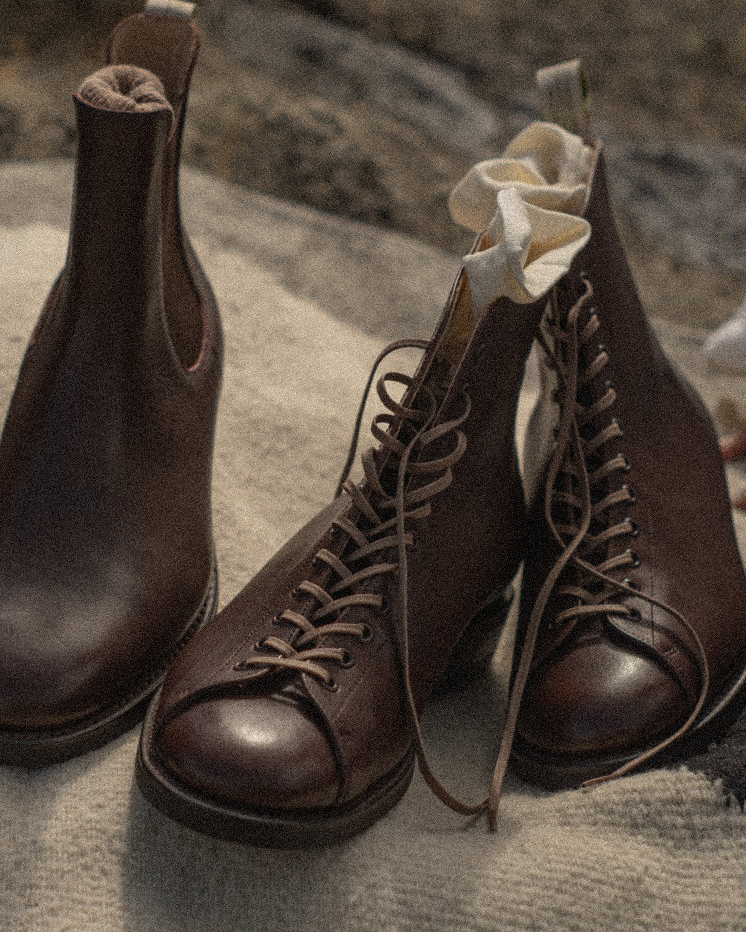 もっちりと弾力があり、上品な艶が出ます。履いていくと自分の足の形に馴染んでいくのがわかります。