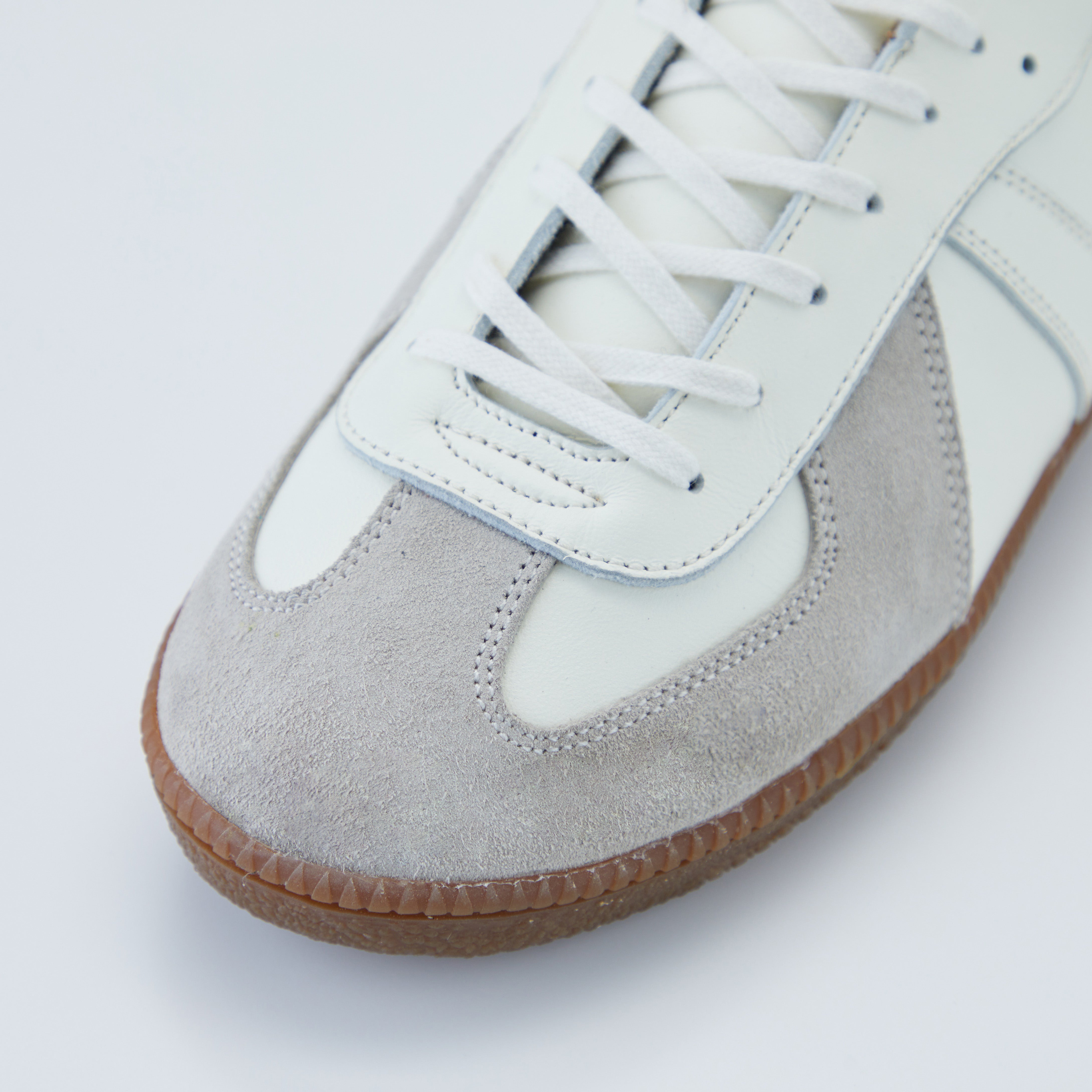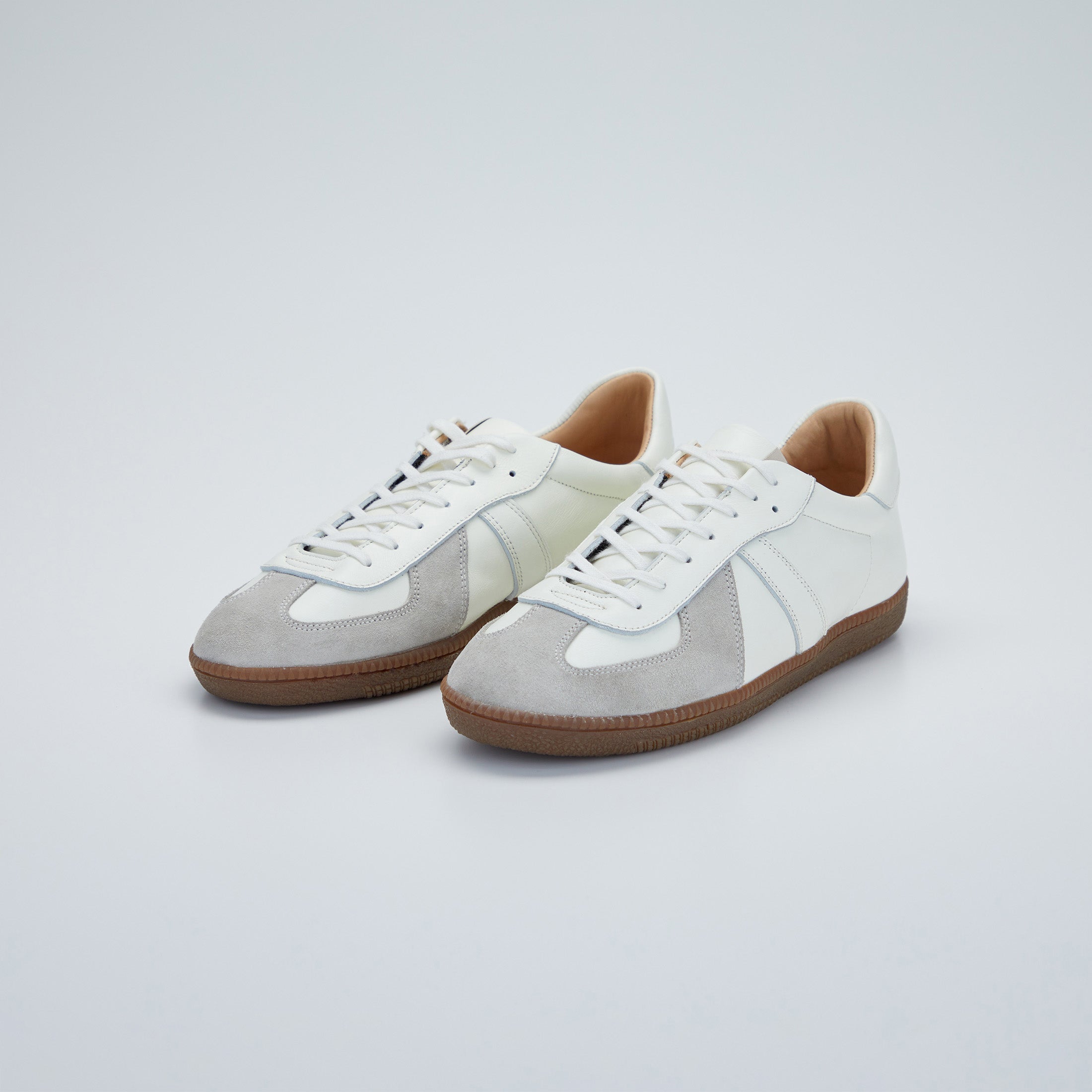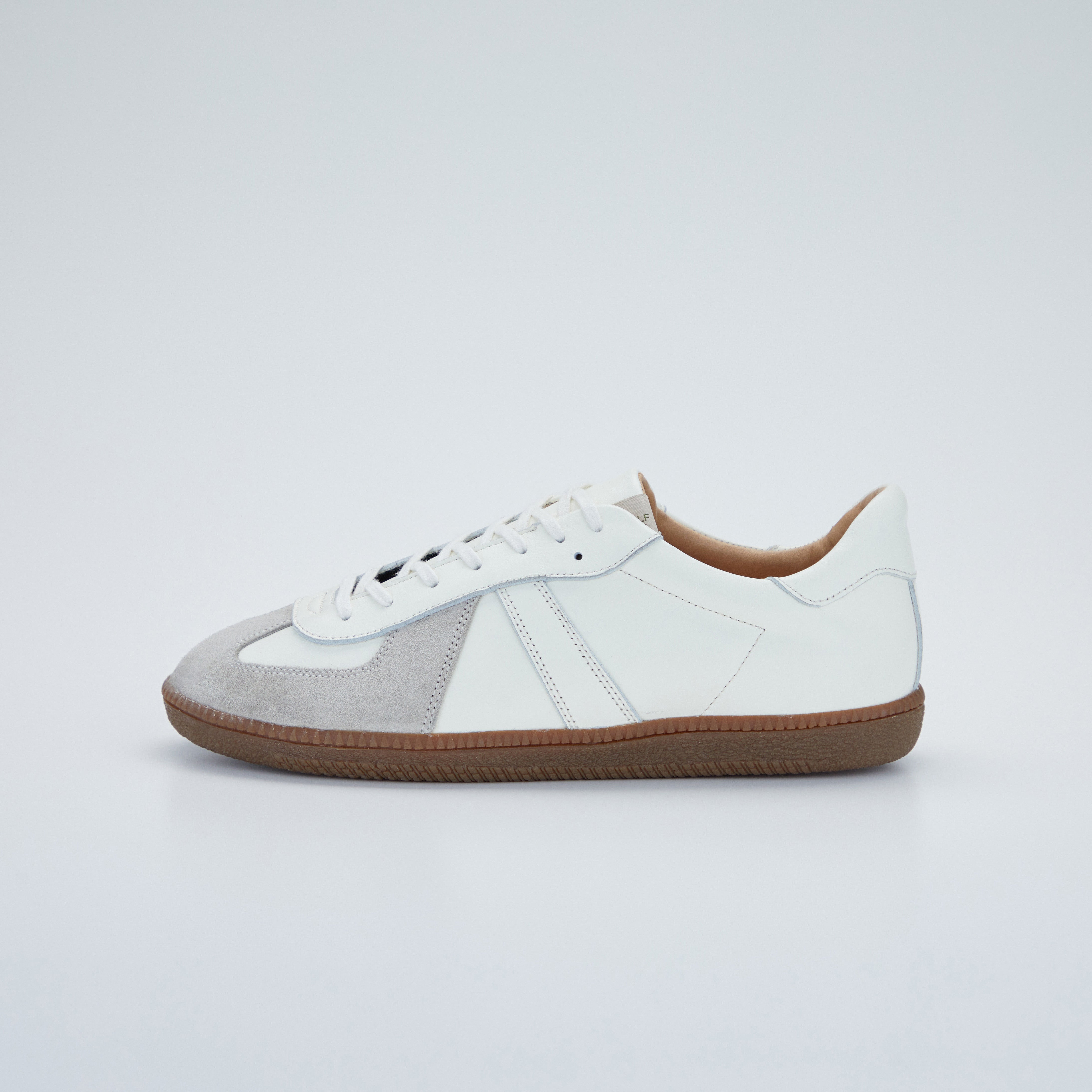 ミリタリースニーカーの代名詞とも言える「ジャーマントレーナー」は、かつてドイツ軍で採用されていたトレーニングシューズがルーツです。オリジナルは細身の木型で設計されていましたが、本モデルでは日本人の足に合うよう、ワイズを広めに設計し、フィット感を高めました。