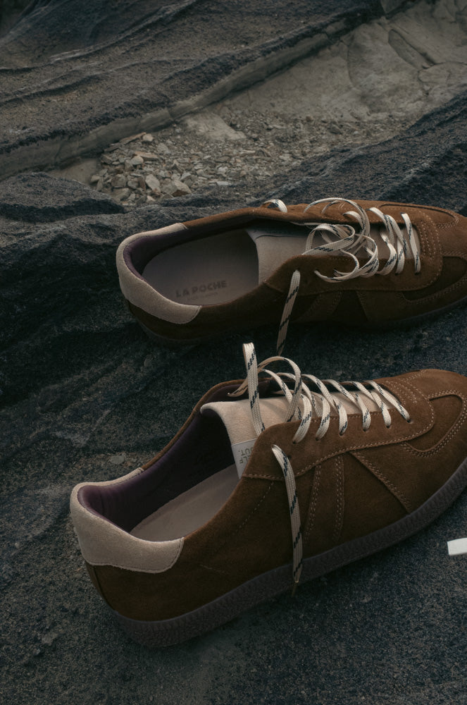 1970〜1990年代に西ドイツ軍で支給されていたトレーニングシューズをベースに、LA POCHEらしい上質さと女性らしさを加えて再解釈したモデルです。